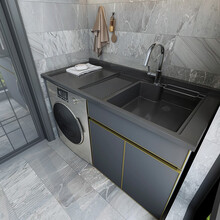 音同 阳台洗衣机柜伴侣洗手盆组合太空铝石英石洗衣槽台面台盆柜一体柜 120cm右盆【双下水*双开门】