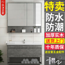 玖沐恋歌实木浴室柜组合洗手盆柜组合洗脸盆柜组合卫浴柜套装镜柜洗漱台洗脸池组合洗手台盆柜面盆柜套装卫浴 K款水泥灰80CM【镜柜款】