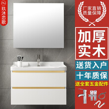 玖沐恋歌岩板浴室柜组合卫浴柜洗脸盆柜组合卫生间洗手盆柜组合洗脸台洗手台洗漱盆面盆柜套装镜柜洗手池组合 M黄条款60CM【陶瓷盆】