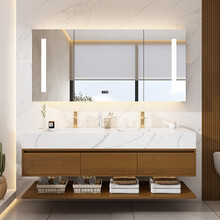 京品传世(JINGPINCHUANSHI)北欧岩板一体盆浴室柜组合卫生间简约现代实木洗漱台洗手洗脸盆 测量尺寸服务
