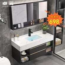 卓元(ZHUOYUAN)浴室柜大理石一体盆实木柜智能镜柜卫浴洗漱台洗脸盆洗脸台卫生间浴室柜组合 【鎏金款80CM套装】普通镜+轻奢白大理石陶瓷盆