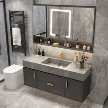 享浴未来 实木浴室柜洗脸盆现代卫生间支持定制岩板一体盆洗漱台套装洗手洗脸盆柜组合 80cm(标准半封镜柜+岩板一体盆)