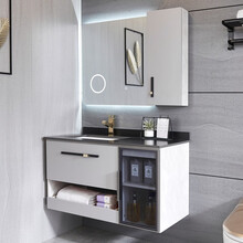 译佳 简约现代轻奢浴室柜套装洗脸盆柜洗手盆柜组合卫生间洗漱台智能卫浴柜定制 90cm岩板台面+智能镜子+侧柜
