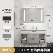 TOZ大理石台下盆卫生间浴室柜洗手盆洗脸盆组合柜 【灰木纹】配智能镜箱【100CM】 区域内送货上楼预约式免费安装