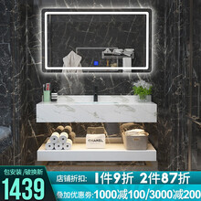 【质保五年】嘉虹大理石浴室柜套装 卫生间浴室洗漱台面盆洗手盆洗脸盆组合储物收纳卫浴柜 浴室柜组合套装 下挂单层0.8米/智能方镜