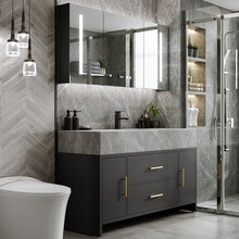 【多层实木】优纶岩板一体浴室柜卫生间洗手盆柜组合洗脸池盆柜组合厕所洗手台浴柜套装可定制洁具 智能储物镜柜款-80cm【岩板陶瓷盆+免漆实木】