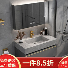 【免费测量】梵临 岩板一体盆浴室柜现代简约轻奢卫生间智能镜洗漱台洗脸洗手台盆柜组合吊柜套装 普通镜柜+岩板陶瓷盆 80CM单盆