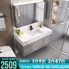 【2021新款】嘉虹浴室柜组合洗脸台洗手台卫浴柜镜柜面盆洗漱台吊柜卫生间洗脸盆洗手盆柜组合套装 F3鱼肚白+岩板一体盆+储物镜柜90CM