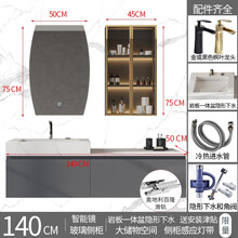 【私人高端定制】轻奢岩板浴室柜组合卫生间洗漱台洗手盆洗脸盆柜 140岩板一体隐形智能镜+玻璃侧柜【百隆滑轨】