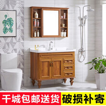 关牧(GuanMu)美式浴室柜组合套装碳纤维小户型洗手洗脸盆池镜柜现代简约卫生间洗漱台落地 60厘米黄花梨落地(实物是第二张)