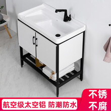 法伊尼(FAIENE)太空铝洗衣柜洗衣盆陶瓷洗衣池阳台带搓板洗衣槽落地式卫生间洗手盆柜卫浴浴室柜组合 天使白洗衣盆(下水套装)+柜子 82CM