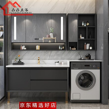 凸凸(TUTU)北欧阳台滚筒洗衣机柜定制岩板一体盆智能实木落地简约浴室柜组合轻奢洗手洗脸盆伴侣洗漱台 深灰色(智能镜柜) 2米橡木