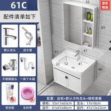 居琛(JUCHEN)太空铝浴室柜挂墙式洗手盆小户型洗脸盆柜组合阳台卫生间面盆洗脸台洗漱台吊柜 【航天铝材】轻奢白60*40+全套配件+镜柜
