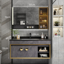 智能岩板浴室柜卫生间洗漱台洗手洗脸面盆柜组合一体卫浴套装落地 1.0米吊柜+触摸感应智能镜柜.除雾