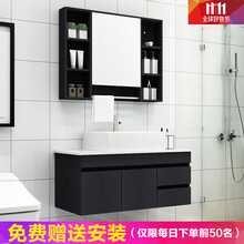 迈洁诗卫浴北欧实木免漆浴室柜组合吊柜镜柜卫浴柜台上盆简约现代 卫生间洗漱台洗手盆柜洗脸盆柜组合洗手台 100CM黑木纹(对开门+抽屉)