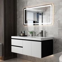 法罗沐斯 浴室柜 大理石洗脸盆洗手台盆柜组合卫生间洗漱台面盆美式卫浴柜子北欧实木镜柜储物洗手池 70cm (对开门 智能镜子)