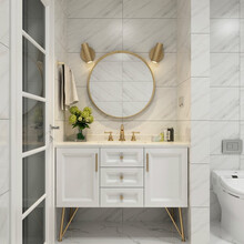 梵深(FANSHENG)北欧轻奢实木浴室柜组合圆镜大理石卫浴柜落地式洗手台卫生间洗漱台洗脸面盆组合 1.2米主柜+圆镜