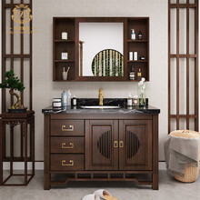 拜伦皇廷(BAILUNHT)卫浴新中式实木浴室柜组合落地式洗脸洗手盆镜柜卫生间洗漱台盆柜定制 胡桃色【颜色及尺寸可定制】 100CM两门三抽屉