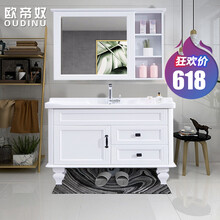 欧帝奴(OUDINU)碳纤维落地浴室镜柜现代简约卫浴柜镜柜洗漱台洗手台洗脸盆柜洗手盆柜浴室柜组合套装 落地碳纤维【典雅白】80cm