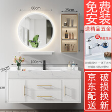 法尼莫兰(FA NI MO LAN)大理石现代简约小户型挂墙式实木北欧卫生间洗脸面盆洗漱台浴室柜组合 100cm智能圆镜款+层板灯副柜 免费安装 可选抽拉龙头