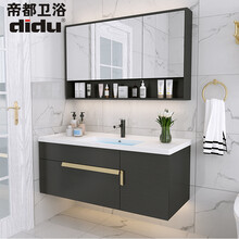 帝都(didu) 实木岩板浴室柜现代简约浴室柜组合套装轻奢洗手盆卫生间洗脸盆柜组合洗漱台洗手台 80公分雅致黑