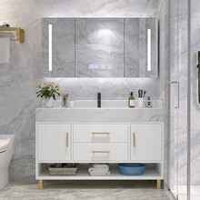 寅森(YINSEN)轻奢岩板实木智能浴室柜组合洗漱台套装现代简约卫生间大理石洗脸洗手盆镜柜 110CM+智能镜柜