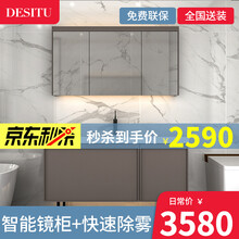 德国德斯图(DESITU)实木浴室柜北欧简约智能镜柜组合套装洗手盆卫生间洗脸盆柜组合洗漱台洗手 浅棕色80cm【智能镜柜】