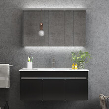 福朗特 不锈钢智能浴室柜组合套装现代简约洗脸洗手面盆池洗漱台盆卫生间 不锈钢材质-标准镜柜款-黑色(镜柜可置物) 70cm(镜柜两镜面,主柜两...