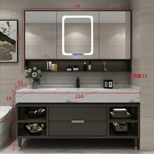 (JIE LANG CHI) 现代北欧大理石洗手台实木浴室柜组合卫生间洗漱台卫浴柜洗手洗脸盆柜轻奢落 150CM落地智能镜柜(四空二抽))
