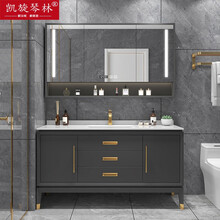 凯旋琴林定制现代岩板浴室柜组合简约轻奢实木双盆落地式卫生间智能洗漱台洗脸池台盆卫浴kx13 橡木+智能镜柜+岩板陶瓷盆 160公分双盆
