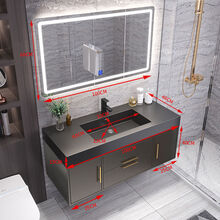 现代简约浴室柜卫浴一体台盆组合柜卫生间洗漱台洗手池洗脸盆镜柜 黑盆加门1米一代智能方