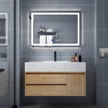 镱朗 大理石浴室柜组合 洗手台洗脸盆卫生间洗漱台套装岩板可定制 洗手盆现代简约卫浴 80CM二代智能方镜(亮灯、除雾、时间)