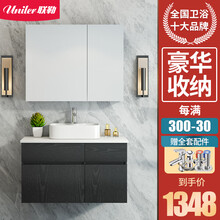 联勒(UNILER)实木浴室柜艺术盆卫浴柜双盆洗手台洗脸台洗漱台卫生间洗脸盆洗手盆柜组合套装 全面镜柜-黑色-80cm【白色请备注】