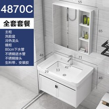 太空铝浴室柜挂墙式洗手盆洗漱台小户型洗脸盆柜组合卫生间面盆洗脸台 70*48下水+龙头+镜柜