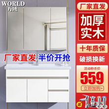 万域(WORLD)实木浴室柜轻奢卫浴柜洗漱台洗手台镜柜面盆柜卫生间洗脸盆柜洗手盆柜组合套装 实木加厚-纯晶白【豪华镜柜】80CM-活动中