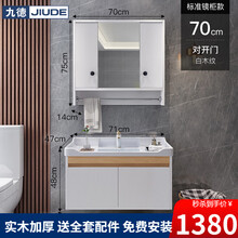 九德(JIUDE)卫浴实木浴室柜组合套装浴室风水镜柜智能隐藏式镜柜镜箱洗漱台洗手脸盆吊柜卫生间洗脸盆 70CM常规款白色-主柜+镜柜