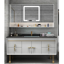 京品传世(JINGPINCS)北欧岩板浴室柜组合现代智能洗手池洗脸台盆柜轻奢卫生间洗漱台面一体盆柜 白色【可定制颜色.尺寸】 90CM橡木材质+岩板陶瓷盆
