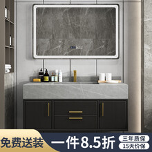 【免费测量】财富村 智能轻奢岩板一体盆镜柜浴室柜组合现代简约卫生间洗漱洗手台洗手盆卫浴 70cm【智能镜+(厚)岩板陶瓷盆】