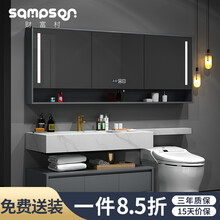 【免费测量】财富村 轻奢智能岩板一体盆浴室柜组合挂墙式洗手间洗漱台洗手洗脸盆柜子 【0.6m主柜+0.7m延长】1.3m智能镜柜