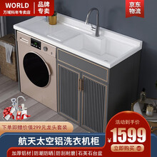 WORLD太空铝洗衣机柜带搓板台盆龙头组合柜阳台小户型洗衣机柜子浴室柜洗手洗漱台洗衣柜组合套装 【航天太空铝】银河灰160CM-默认发左盆-含配件 豪...