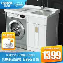 希箭/HOROW华耀系列太空铝洗衣机柜阳台洗衣机柜带洗衣搓板带龙头带台盆组合柜 【推荐】平行盆(默认左)120cm