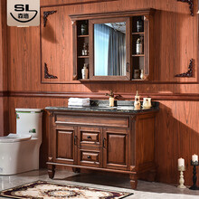 【森珞】美式浴室柜实木卫浴柜镜柜组合套装卫生间洗漱台洗脸盆洗手盆柜落地式卫浴柜洗手台 100公分红橡木 标配台面