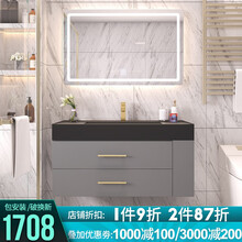 【防水防潮】嘉虹卫浴实木纳米岩石一体盆浴室柜组合套装北欧轻洗手盆卫生间洗脸盆柜组合洗漱台洗手台F5 纳米岩石+多层实木+智能方镜90CM