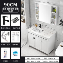 落地式岩板浴室柜组合现代简约洗手盆阳台洗脸盆卫生间洗漱台 90V皓白+白岩板+龙头+镜柜