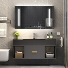 双牧凌/SMULN 简约现代纳米岩石一体盆浴室柜组合北欧轻奢卫浴洗漱台洗脸池盆洗手盆浴室智能镜套装 智能镜柜-80cm【多色可选】