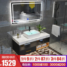 【免费安装】(宾匠)大理石浴室柜实木套装 卫生间洗漱台洗手盆柜组合洗脸面盆镜柜北欧简约吊柜收纳储物柜 公寓款 80cm 智能方镜