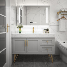 森珞橡木岩板一体盆北欧浴室柜组合轻奢卫生间现代实木简约洗手洗脸洗漱台盆柜 智能镜柜款 120公分