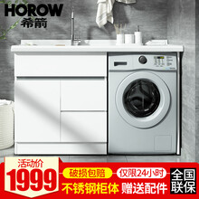 希箭/HOROW不锈钢洗衣机柜台盆带搓衣板组合套装落地式浴室阳台洗衣柜 象牙白150cm【左右盆可选,默认发左盆】