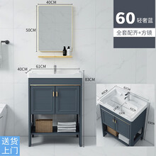 现代简约太空铝浴室柜落地式洗手盆柜组合小户型阳台卫生间洗脸盆洗漱台卫浴柜镜柜可开票 轻奢蓝61落地带门全套+苹果金镜