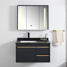 法伊尼(FAIENE)轻奢岩板浴室柜组合卫生间洗脸盆柜洗手台洗漱台太空铝挂墙式卫浴柜洗手盆柜组合 802灰:62CM黑岩板+智能镜+A4黑色龙头